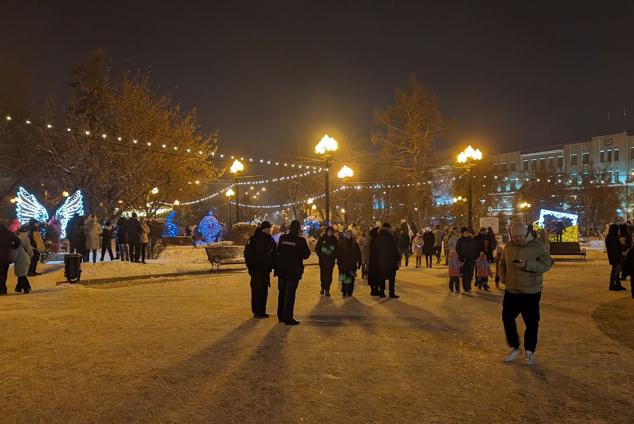 Несмотря на легкий мороз всего -10, после полуночи в сквере Кирова, где обычно проходят основные городские торжества в ночь на Новый год, в этот раз собралось немного людей. Да и делать тут было особенно нечего. Некоторые и вовсе предпочли отметить Новый год на берегу Ангары.