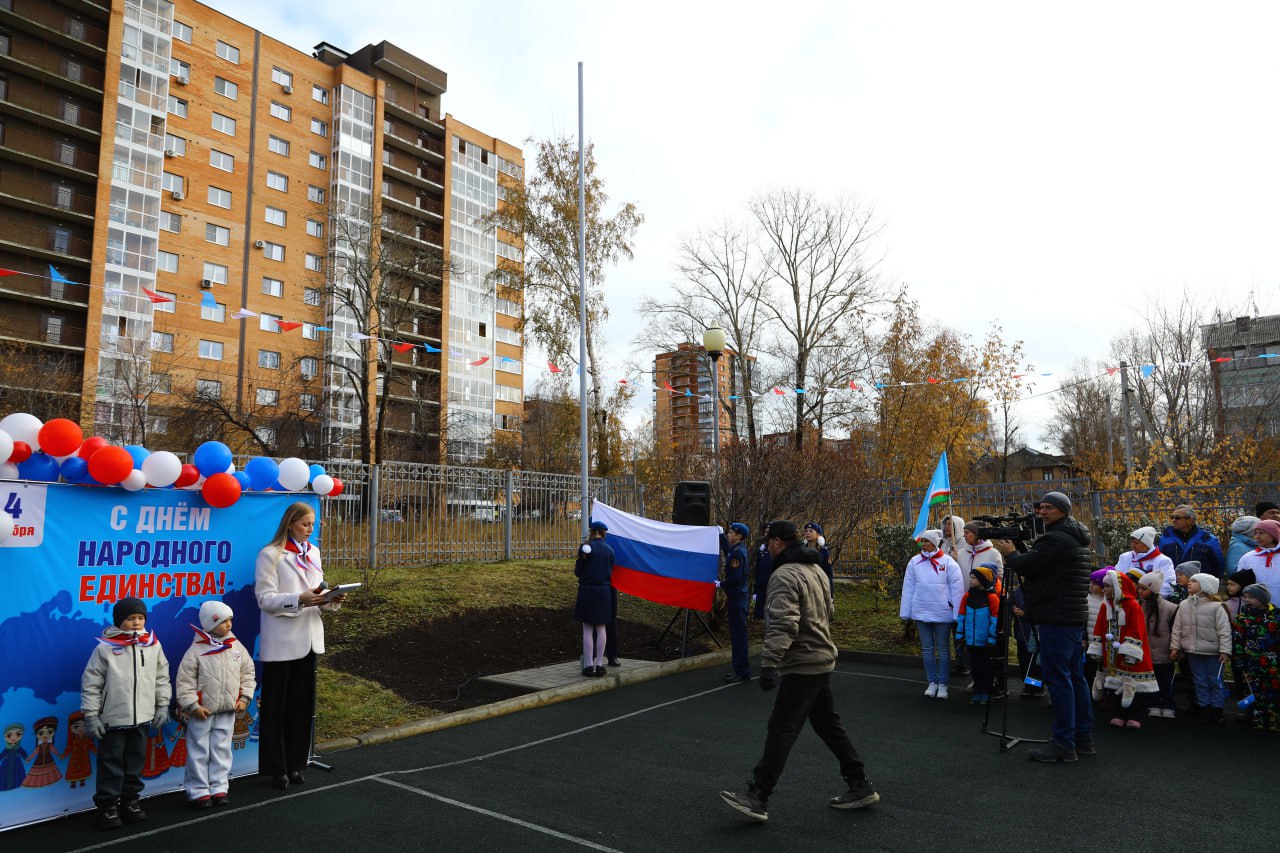 В Иркутске на территории детского сада № 176 при поддержке депутата городской Думы по избирательному округу № 34 Ивана Брилки торжественно открыли флагшток с главным символом страны – российским триколором. Мероприятие прошло в честь Дня народного единства. В нем принял участие мэр города Руслан Болотов, представители администрации, учреждения и местные жители.