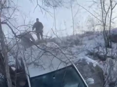 Один из парней просил водителя не ехать на горку и предупреждал, что они могут разбиться, однако товарищу захотелось куража и он отважился на опасный маневр.