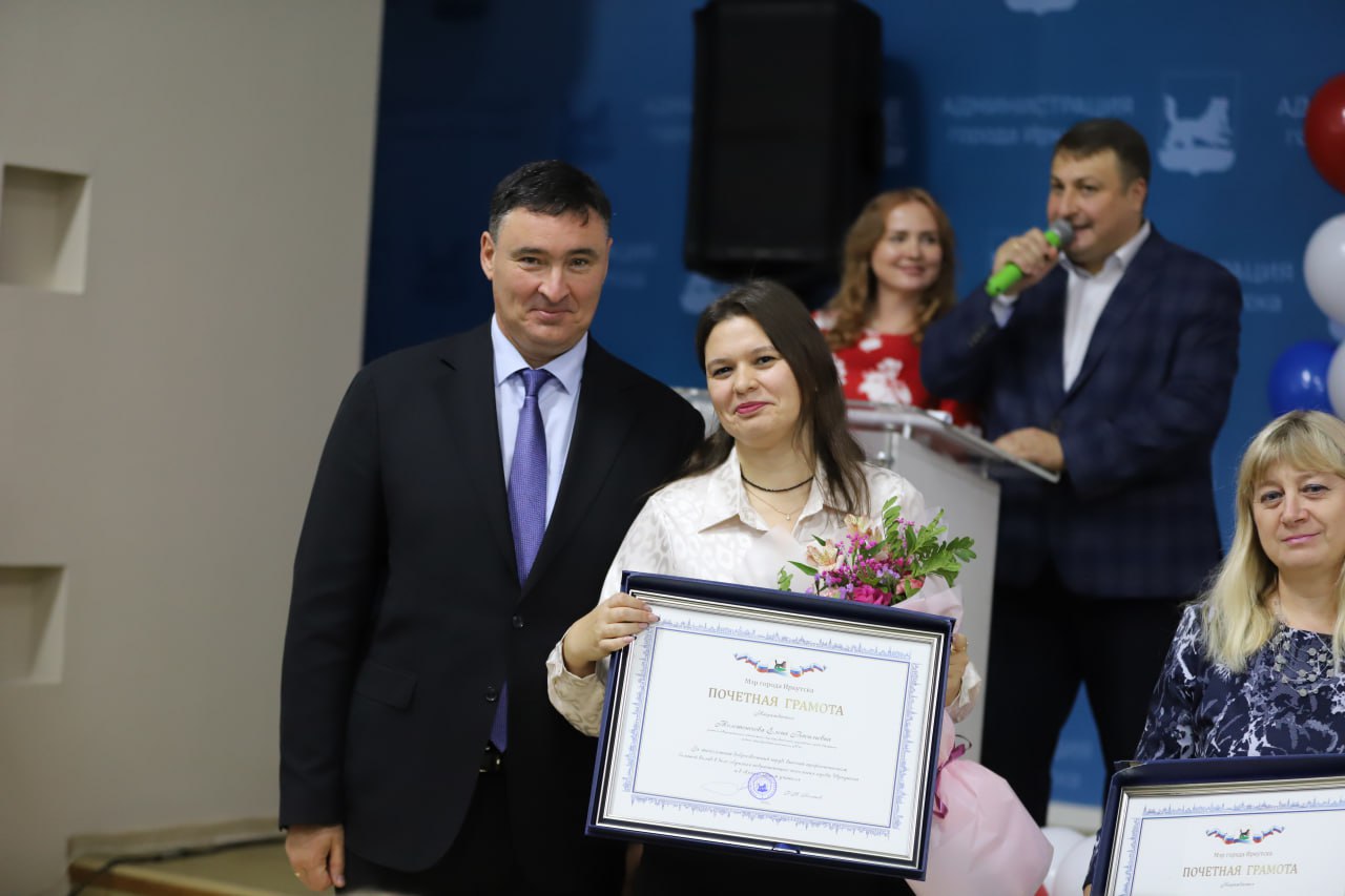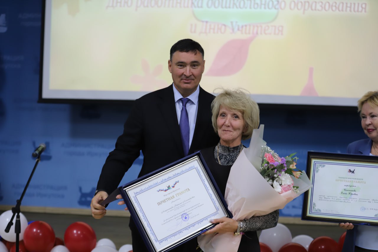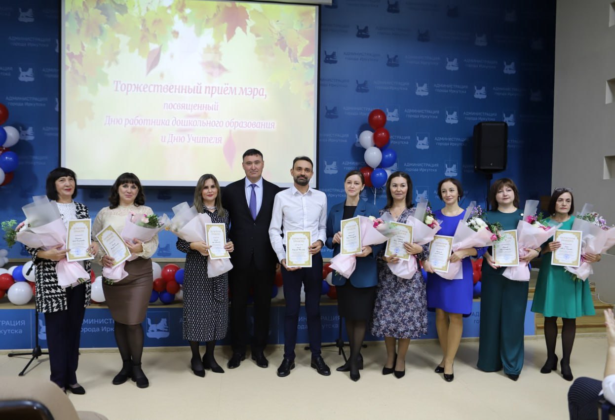 В администрации Иркутска прошел торжественный прием мэра, посвященный Дню работника дошкольного образования и Дню учителя. В ходе мероприятия глава города Руслан Болотов и председатель думы Евгений Стекачев вручили 30 педагогам и работникам сферы образования благодарственные письма, почетные грамоты и награды министерства просвещения РФ.