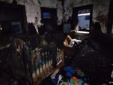 Женщина услышала шум, разбила окно и выбралась на улицу. Её с ожогами доставили в больницу. К сожалению, ребёнок погиб.