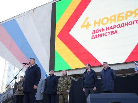 А завершил праздничный День народного единства концертом на площади Дворца спорта «Труд». Звучало много теплых сло-поздравлений, на сцене выступили творческие коллективы Иркутской области, в том числе народные коллективы, которые исполнили песни и танцы своих предков. Участники мероприятия – представители разных национальностей закружились в Хороводе дружбы.