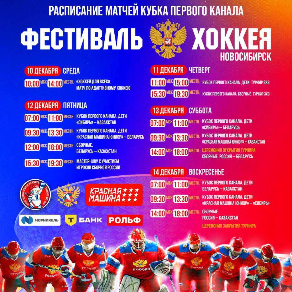 В Новосибирске с 10 по 14 декабря состоится Кубок первого канала по хоккею. Турнир проведут в регионе впервые. Об этом 4 декабря сообщил губернатор Новосибирской области Андрей Травников в своем телеграм-канале.