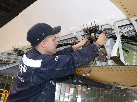 - На станции F10 с фюзеляжем стыкуются консольные части крыла (КЧК). Отделение досборки прокладывает бортовую кабельную сеть, устанавливает комплексную систему управления, противообледенительную и гидравлические системы, систему отбора воздуха, - добавили в ПАО "ОАК".