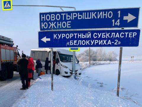 По данным алтайских спасателей, происшествие случилось в Смоленском районе края, в километре от села Новотырышкино. Предварительно установлено, что водитель транспортного средства не справился с управлением на зимней дороге и микроавтобус "обнял" придорожный столб около пешеходного перехода.