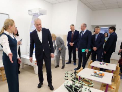 Глава региона осмотрел новое трехэтажное здание детсада. Учреждение уже начало прием детей. Помимо помещений для групп, в заведении также работает собственный пищеблок, спортивный и актовый залы, кабинеты для робототехники и создания мультфильмов. Имеется и 3D-песочница.
