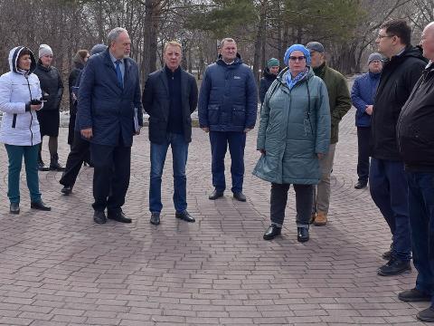 В ходе выездного совещания, прошедшего под председательством главы города Вячеславом Франком, участники встречи осмотрели предполагаемое место размещение памятника - аллею Ветеранов по улице Аванесова.