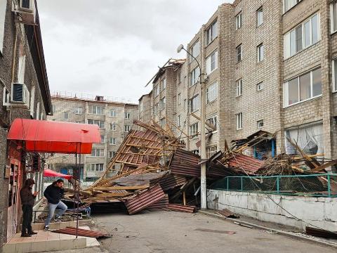 В Красноярске ураганный ветер снес крышу многоэтажного дома. Под завалами оказался мужчина.