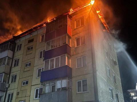 Минувшей ночью в городе Междуреченске, что в Кузбассе, было неспокойно. После полуночи тут загорелась кровля пятиэтажного панельного жилого дома.