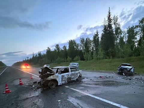 Происшествие случилось около двух часов ночи 5 июля на 1257 километре федеральной автодороги Р-255 "Сибирь", недалеко от поселка Разгон. Там 25-летний водитель автомобиля "Тойота Карина" выехал на полосу встречного движения, где врезался в автомобиль "Киа Рио" под управлением 26-летнего мужчины.