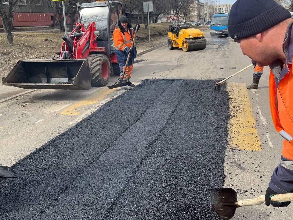- Для начала размечаем область повреждения, а затем вырезаем верхний слой асфальта. После того, как провели очистку, наносим битумную эмульсию и укладываем новый материал, – рассказал Василий Ефремов.