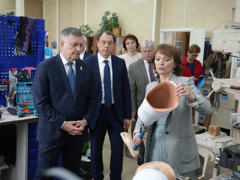Глава Приангарья также заявил о готовности привлекать дополнительные средства для расширения производственных площадок и трудоустройства граждан с ограниченными возможностями здоровья. Управляющая филиала Юлия Утешева провела экскурсию по корпусам, где изготавливают протезы и обувь, а также показала стационар на 25 коек, где пациентов обучают ходьбе на протезах.