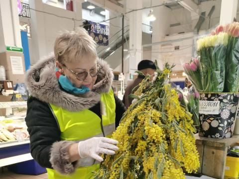 Особое внимание было уделено осмотру мимозы, которая является одним из самых популярных подарков к празднику.