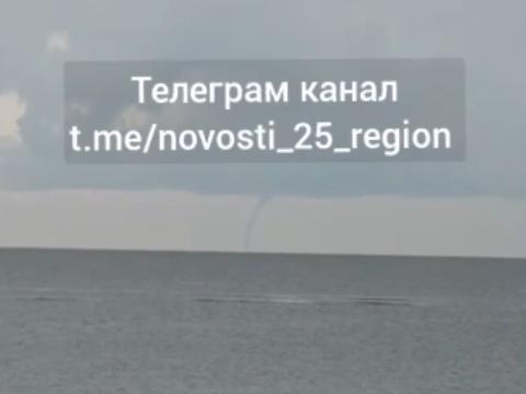 На видео видно, что на озере Ханка образовался «черный хвост» — воронкообразное образование, которое расширяется у основания облака и сужается к земле.
