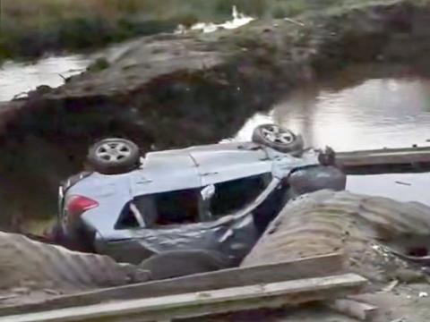 По данным правоохранителей, на участке перед ремонтируемым мостом водитель кроссовера "Тойота РАВ4" куда-то так торопился, что врезался в мини-грузовик "Мицубиси Кантер", двигавшийся на встречу. В результате, кроссовер съехал с проезжей части и опрокинулся в заполненный водой кювет.