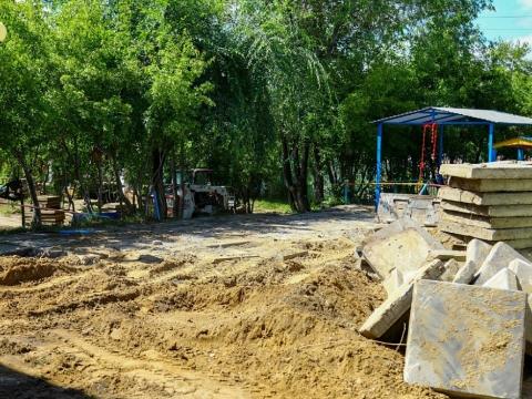В микрорайоне Университетский, который входит в округ №28 председателя Думы Иркутска Евгения Стекачева, во дворе детсада №167 сняли старые бетонные плиты. Их заменят на асфальт. В следующем году тут пищеблок и игровые площадки во дворе.