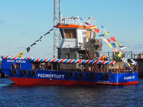 В "Росморпорту" рассказали, что нефтемусоросборщик-бонопостановщик получил название "МНМС-Лебедь". Его возводили для Дальневосточного бассейнового филиала ФГУП "Росморпорт". Он станет работать в морском порту Владивостока.