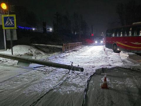 По предварительной версии, 46-летний водитель автобуса на заваленной снегом городской дороге превысил безопасную скорость и не справился с управлением. В результате, автобус снес опору линии электропередач, после чего выехал на тротуар в районе пешеходного перехода.