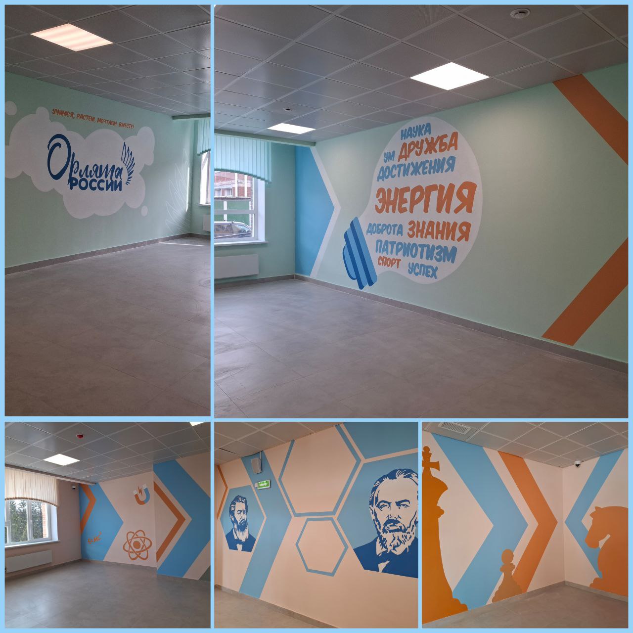 Внутренние стены школы расписаны профессиональными художниками, на одной из них изображены выдающиеся ученые Александр Степанович Попов и Павел Николаевич Яблочков. На каждом этаже установлены наклейки для слабовидящих, которые помогут детям ориентироваться по территории, обозначая лестницы, зоны отдыха и другие важные места.