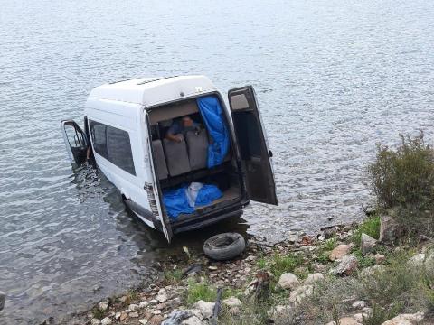 Водитель забыл поставить микроавтобус на ручной тормоз, сообщает пресс-служба СК России. Всем повезло, что в этом месте относительно пологий берег, а не скалистый обрыв. К тому же, возле берега мелко. Тем не менее, медпомощь понадобилась нескольким пассажирам.