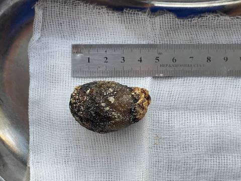 В Улан-Удэ хирурги из Больницы скорой медицинской помощи удалили женщине огромный желчный камень из двенадцатиперстной кишки. Его размер был 4,5 на 3 сантиметра. Об этом сообщили 9 октября в телеграм-канале медучреждения.