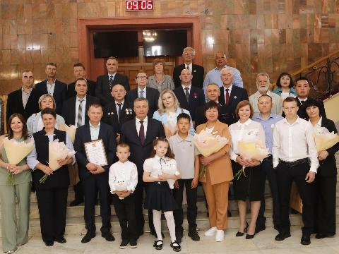 В преддверии Дня России по поручению президента РФ Владимира Путина губернатор Иркутской области Игорь Кобзев вручил государственные награды 24 жителям региона. Среди наград — медаль ордена «За заслуги перед Отечеством» II степени, медали ордена «Родительская слава», нагрудные знаки к почетным званиям заслуженных артистов, ветеринаров, учителей и работников высшей школы, а также Почетные грамоты и благодарности от главы государства.