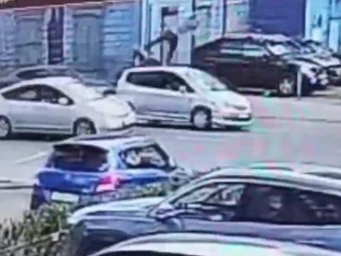 Водитель автомобиля «Хонда Фит» совершил наезд на пешехода, в результате чего тот был подброшен вверх и оказался на крыше машины.