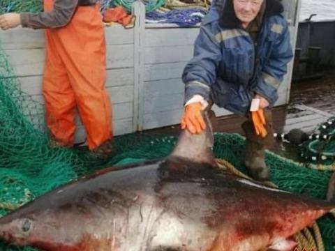 Для здешних мест это не экзотика, но такие размеры всё же редкость. Судя по упитанности, хищница неплохо питалась — вероятно, шла за лососем и сельдью, которых сейчас в прибрежных водах хватает.