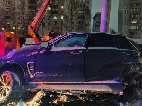 Трагедия произошла в начале седьмого часа утра на улице Ипподромской около дома №47а. Там сорокалетний водитель автомобиля "БМВ Х5" не справился с управлением и сначала наехал на бордюр, после чего тяжелый кроссовер бросило на столб освещения, установленный на разделительной полосе.