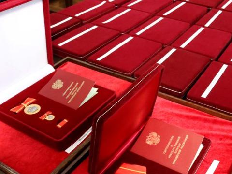 Орден "Родительская слава" за заслуги в укреплении института семьи и воспитании детей наградили жителей Алтайского края - Александра и Ирину Ивкиных. За многолетнюю государственную службу руководителя управления губернатора Омской области по защите государственной тайны Игоря Романенко отметили знаком отличия "За безупречную службу".