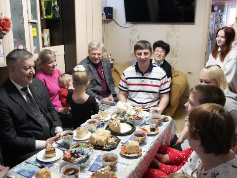 На встрече Губернатор пообщался с детьми, поинтересовался, где собираются продолжить обучение старшие и как растут малыши. С главой семьи Николаем Александровичем Игорь Кобзев обсудил реализуемую в регионе инициативу по награждению Почетным знаком «Отцовская доблесть».