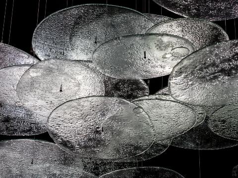 Концепция арт-объекта, парящего на высоте от трех до четырех метров, родилась в мае прошлого года в время креативной сессии. В итоге на создание арт-объекта, который получил название «Равновесие» ушло 20 больших старых окон (200 кг оконного стекла). Он состоит из 60 фрагментов разных размеров, каждый из которых держится на одном единственном креплении.