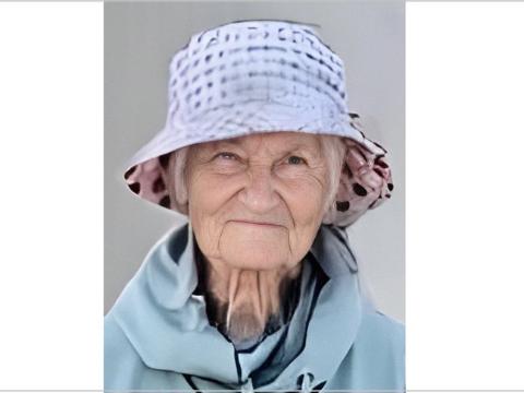 Приметы пропавшей: рост около 165 см, худощавого телосложения, волосы седые, глаза карие. Была одета в тёмно-синюю кофту, белую куртку, зелёные штаны, бордовые ботинки. При себе имела трость.