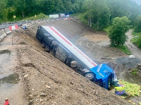5 августа грузовик, перевозивший арбузы, съехал с дороги. Из-за этого инцидента на трассе образовалась пробка длиной почти 4 километра, как показывают данные сервиса Яндекс.Карты.