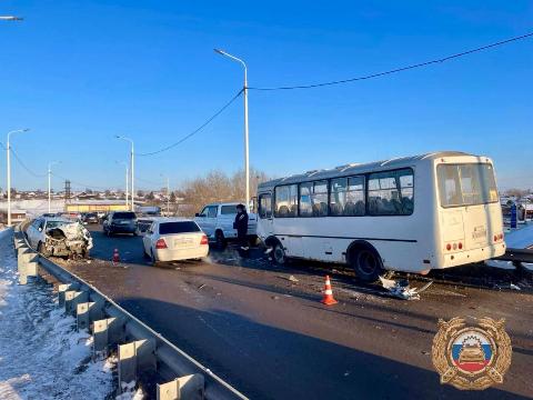Инцидент произошел в 15:19.Прибывшие на место происшествия сотрудники ГИБДД предварительно установили, что водитель автомобиля «Тойота Аллион» выехал на встречку и столкнулся с пассажирским автобусом «ПАЗ».