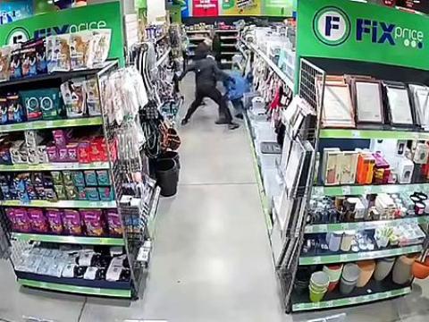 Камера видеонаблюдения в магазине "Фикс Прайс" зафиксировала, как 12 июня около 12 часов дня по местному времени некий мужчина в черном и с защитной медицинской маской на лице сначала делал вид, что выбирает товар на полке, но затем зашел в проход между стеллажами, где целенаправленно напал на ничего не подозревавшего покупателя. Преступник зверски избил свою жертву, а потом убежал.