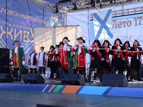 Во время открытия торжеств гости и жители столицы Камчатки увидели театрализованный исторический пролог, воссоздающий события 1740 года, когда в Авачинскую губу вошли корабли Второй Камчатской экспедиции "Святой апостол Пётр" и "Святой апостол Павел" под командованием Алексея Чирикова и Витуса Беринга. Они и заложили Петропавловск-Камчатский.