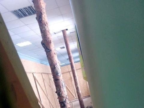 Судя по всему, в школе сделали или заканчивают так называемый косметический ремонт. Там смонтировали подвесные потолки, заменили двери и напольное покрытие и вроде бы учебное заведение выглядит прилично. Однако, фактически, потолочные панели ломаются под тяжестью рушащихся аварийных конструкций, а гнилые трубы рвутся в самый неподходящий момент.