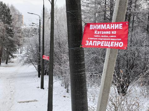 Особо тщательную работу чиновники ведут в Свердловском районе Иркутска, который расположен, что называется на "пересеченной местности". Так, первые таблички и баннеры появились уже на склоне в Академгородке, который ведет с улицы Фаворского к Лермонтова. Тут несознательные юные и взрослые иркутяне катаются зимой ежегодно. И иногда получают травмы. Сам земельный участок находится в оперативном управлении Иркутского института химии имени А. Е. Фаворского СО РАН. Дирекция института приняла решение предупредить горожан о возможной опасности.