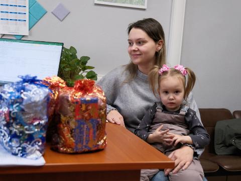 Накануне одной из первых подарок получила трехлетняя жительница Ново-Ленино Ангелина Гудкова. Кроме конфет и шоколадок, им с мамой передали бесплатные билеты на представления на новогодние праздничные представления и фестивали.