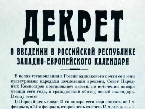 Таким образом новая власть перевела огромную страну со старого юлианского календаря, которого в Российской империи придерживались, в том числе, по требованию православной церкви, на григорианский календарь, по которому жила европейская цивилизация.