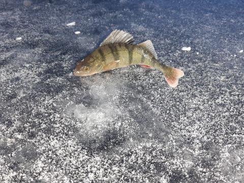 Толщина льда в заливе Мухор в это время года составляет от 90 до 110 см. Основные виды рыбы: окунь, плотва, щука, бычок-подкаменщик и хариус. Разрешен вылов окуня и плотвы без ограничений по размеру, а хариуса – не менее 29 см.