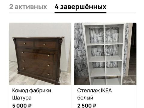 Последние завершенные продажи у нее датируются 10-11 мая. Среди проданных вещей – холодильник, комод и стеллаж.