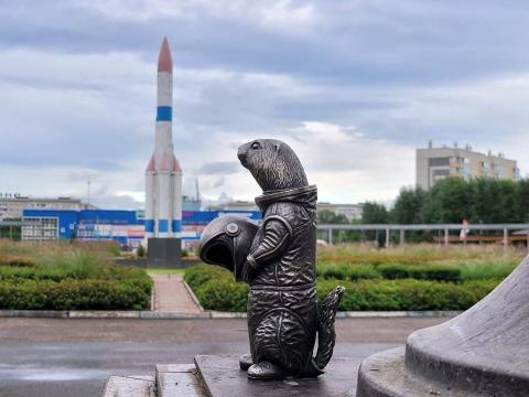 Сначала суслик появился на парапете Центральной набережной Енисея, затем на Ярыгинской набережной и на Караульной горе. Теперь бронзовый суслик в скафандре и с гермошлемом в лапах появился в сквере Космонавтов.