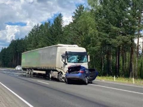 Согласно предварительной информации, водитель автомобиля Kia Rio пытался совершить обгон, но не справился с управлением и столкнулся с грузовиком DAF. После этого он потерял контроль над автомобилем и столкнулся с грузовиком Dongfeng.
