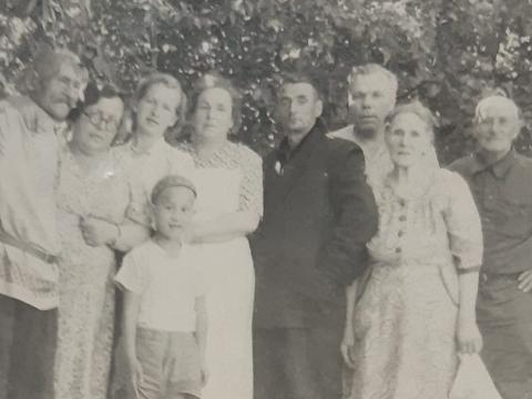 Крайний справа - друг деда Григорий (фамилию не помню), закончил ветеринарный институт, работал в Вилюйске, был репрессирован, вернувшись из сталинских лагерей и жил в нашем доме. Затем устроился на должность завхоза в Большелугской школе, в которой ему предоставили комнату.