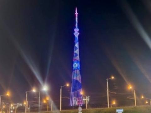 Такая же подсветка в субботу появилась на телевизионной башне в Братске.