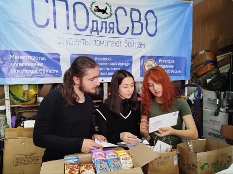 В Иркутской области продолжается акция "СПО для СВО", в рамках которой преподаватели и студенты заведений среднего специального образования региона собирают гуманитарную помощь для участников специальной военной операции. Акция проводится по инициативе Иркутского регионального колледжа педагогического образования (ИРКПО) и при поддержке министерства образования Иркутской области.