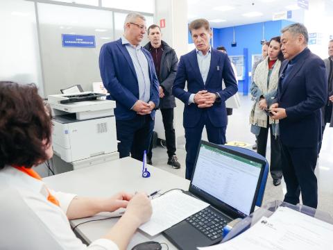 Олег Кожемяко приехал в город Артем и посетил местное отделение Дальневосточной энергетической компании (ДЭК). Тут открыли специальные отдельные окна, через которые посетители могут получить консультацию и решить вопросы по изменению тарифов.