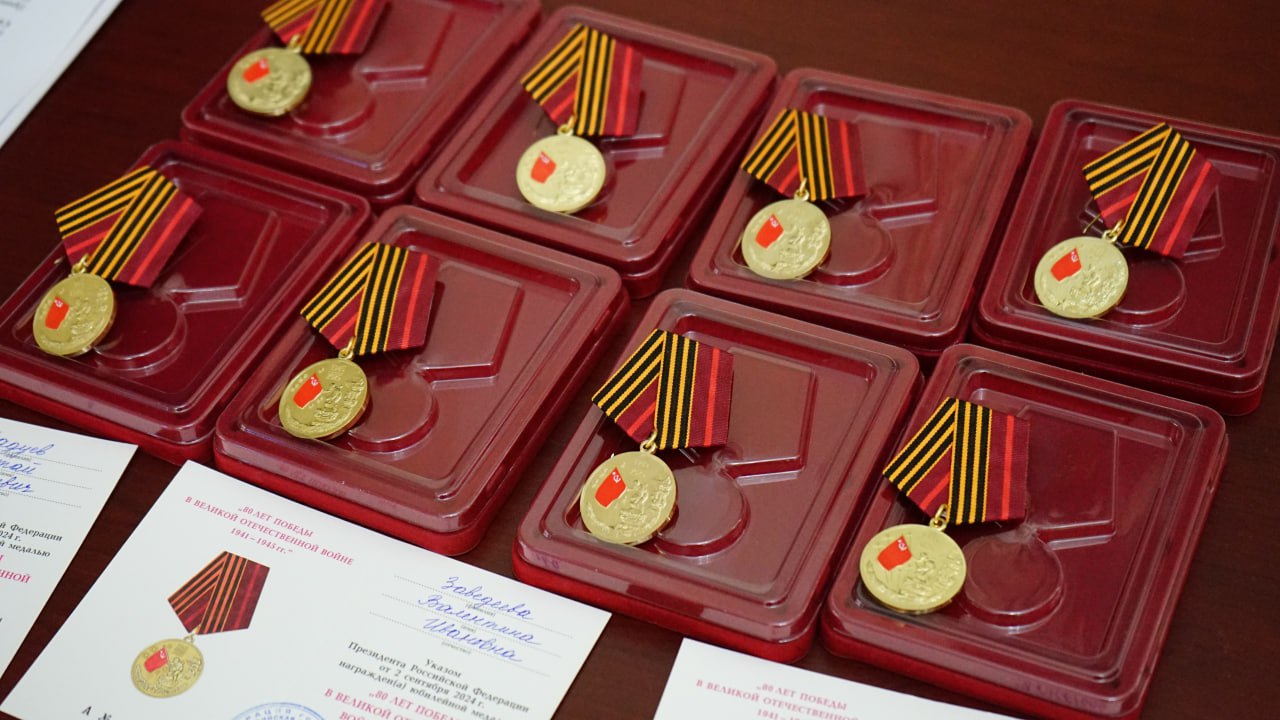 Глава города вручил восемь наград. Их получили участники Великой Отечественной войны Алтай Яковлевич Дадуев и Константин Михайлович Познянский, труженики тыла Михаил Силантьевич Пинчук и Людмила Михайловна Сергеева, блокадники Ленинграда Лидия Петровна Мещерякова, Валентина Ивановна Заведеева, Дина Александровна Кононова и несовершеннолетний узник концлагерей Надежда Яковлевна Константинова. До 9 мая такие медали вручат всем ветеранам.
